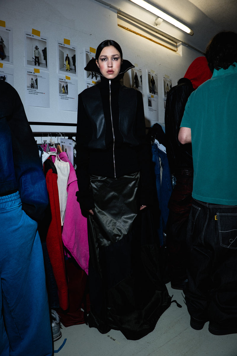 The core of sample030 features a unique design style: innovative fabric treatments, skilled craftsmanship, and a thoughtful approach to upcycling. Reused materials are transformed through high-quality processes, making their origins unrecognizable; only the final design remains, refined and precise.
